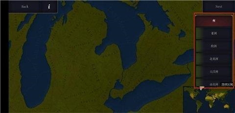 4、进入到创建页面,在右侧可以选择洲,然后点击地图可以选择势力范围。