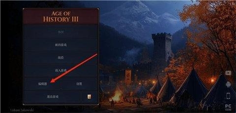 1、进入文明时代3游戏的主页面,点击下方的编辑器。