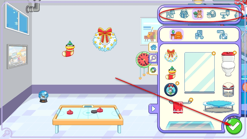 5、直接将物品拖到想要放置的位置点绿色的√即可,地图是可以横向移动的。