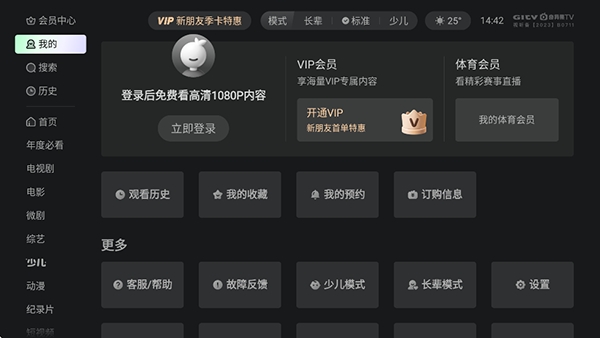 3、打开电视,进入奇异果TV客户端,选择”我的“,然后点击”账号管理“,扫码之后点击取消”自动续费“。