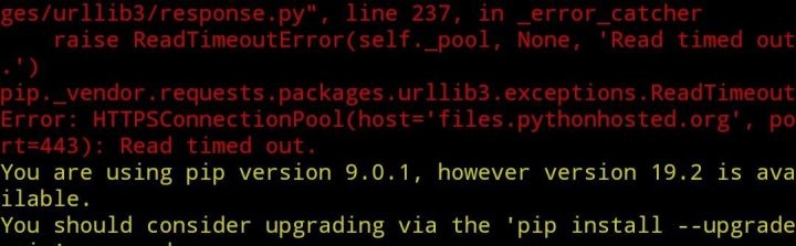 4、这个是命令窗下pip下载失败按着黄色提示进行操作。