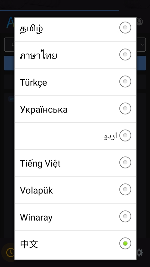 2、进入软件后默认为英文,只需下来找到中文即可完成中文设置