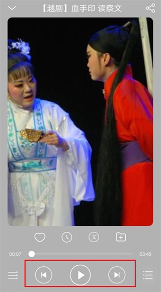 4、进入播放页面,选择播放或暂停,查看列表选择戏曲。