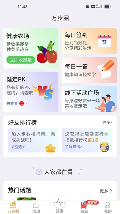 万步健康app是一款专为运动人士打造的软件,在此软件中用户可以在社区分享自己的运动经验、学习新的运动经验,同时app具有检测身体状况的功能,用户可以随时在软件中查看自己的心率、呼吸、压力、血脂等情况,并且根据用户锻炼的次数和时间,会有相应的金币奖励,用户可以用金币去软件中构建自己的运动农场,将运动和农场建设结合在一起,增加趣味性,大家快来下载体验一下吧!