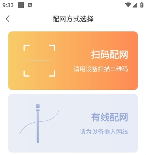 3、根据摄像头类型选择扫码配网或有线配网,这里以扫码配网为例;