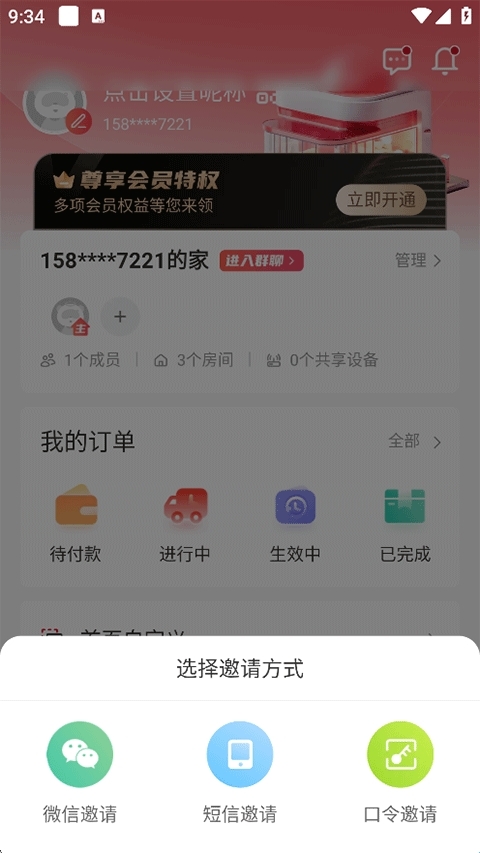 6、选择微信邀请、短信邀请以及口令邀请家人即可。