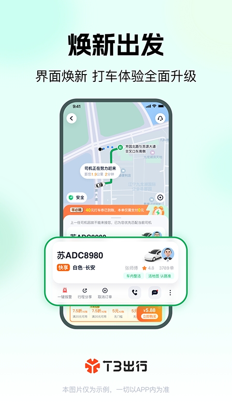 T3出行app专为出行人士打造的网约车平台,在此平台中,有企业用车、接机车、预约车、专车等多样化用车,满足用户的个性化需求;同时,T3出行app奉行保障更完善、响应更迅速的理念,把用户的需求放在首位,为用户提供更优质的服务;此外,该软件还会对运行中的车程进行智能安全监控,发现有异常情况,用户就可以触发警报装置,时时刻刻保护用户安全;感兴趣的话快来下载体验吧!