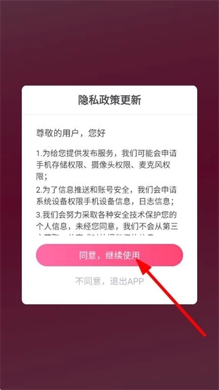 1、在隐私政策更新弹窗中,点击同意,继续使用,进入软件。