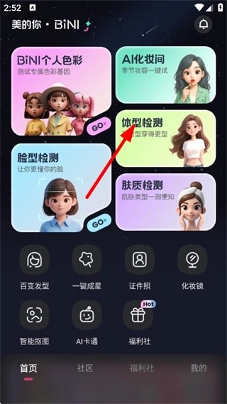2、在软件主界面,点击体型检测,进入体型检测介绍页面。