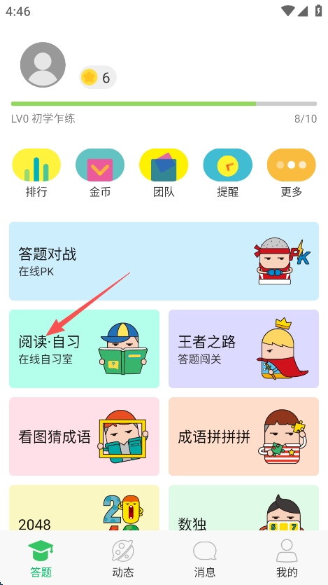 1、点击屏幕左侧的“阅读自习”。