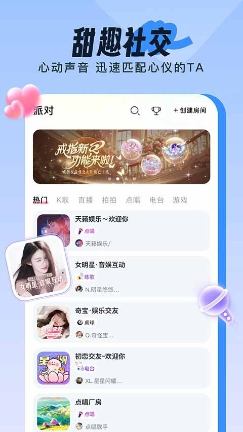 -多人排麦语音直播聊天,各种好玩主题任你选!连麦k歌、相亲交友、小游戏pk....等百变玩法更有趣