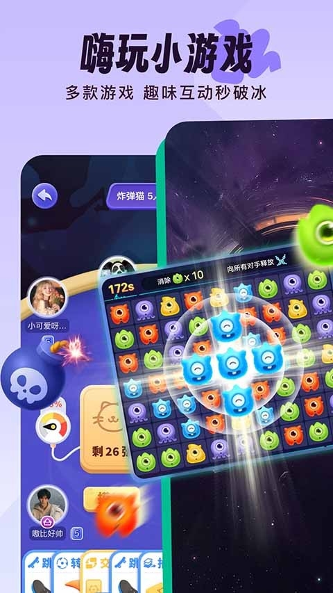 -聊天、交友、恋爱、唱歌、话题匹配,一起分享生活点滴,一起热闹互动,彻底消灭孤单。无压力和陌生人倾诉你的心声,让我们用灵魂遇见彼此,认识你心动的ta,告别单身