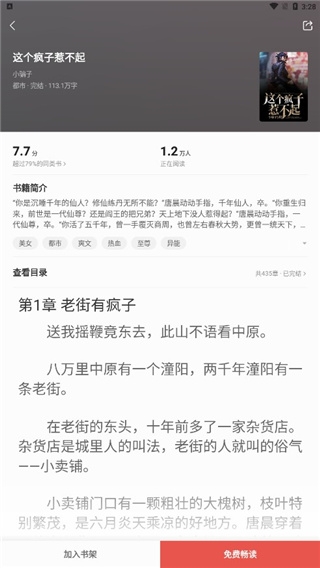 9、然后选择自己喜欢的一般书,点进去这里可以看到书的相关介绍,然后点击免费阅读,喜欢的还可以加入到书架中去。