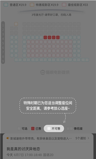 4、当然由于特色时期,电影院将位置调整为了安全距离;