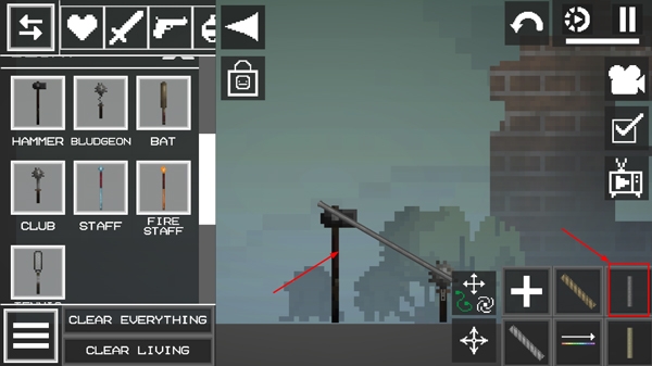 2、玩家可以使用锤子、斧头、乃至爆炸物等道具,搭建场景或进行各种物理实验,观察角色的真实反应。