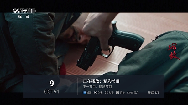 2、电视端用户使用遥控器按菜单选项可以唤起电视频道列表。