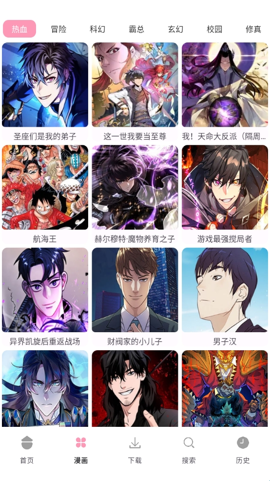 2、点击底部的“漫画”可以看到不同类型的漫画资源;