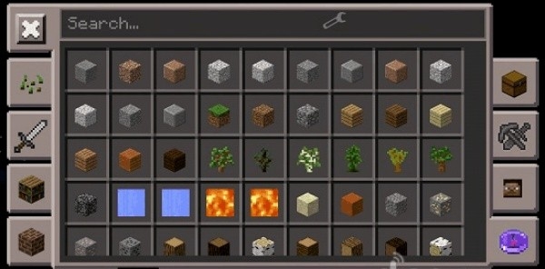 我们能看到背包里的各种物品,还能通过附魔按钮直接附魔物品,可以为各种物品附魔,不光是武器和工具,草方块也能附魔!